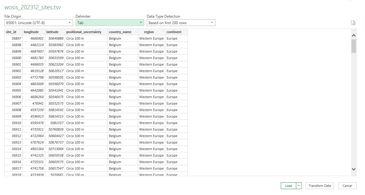 This page will guide you to import WoSIS Snapshot tsv files into excel, using the example of WoSIS snapshot 2023.