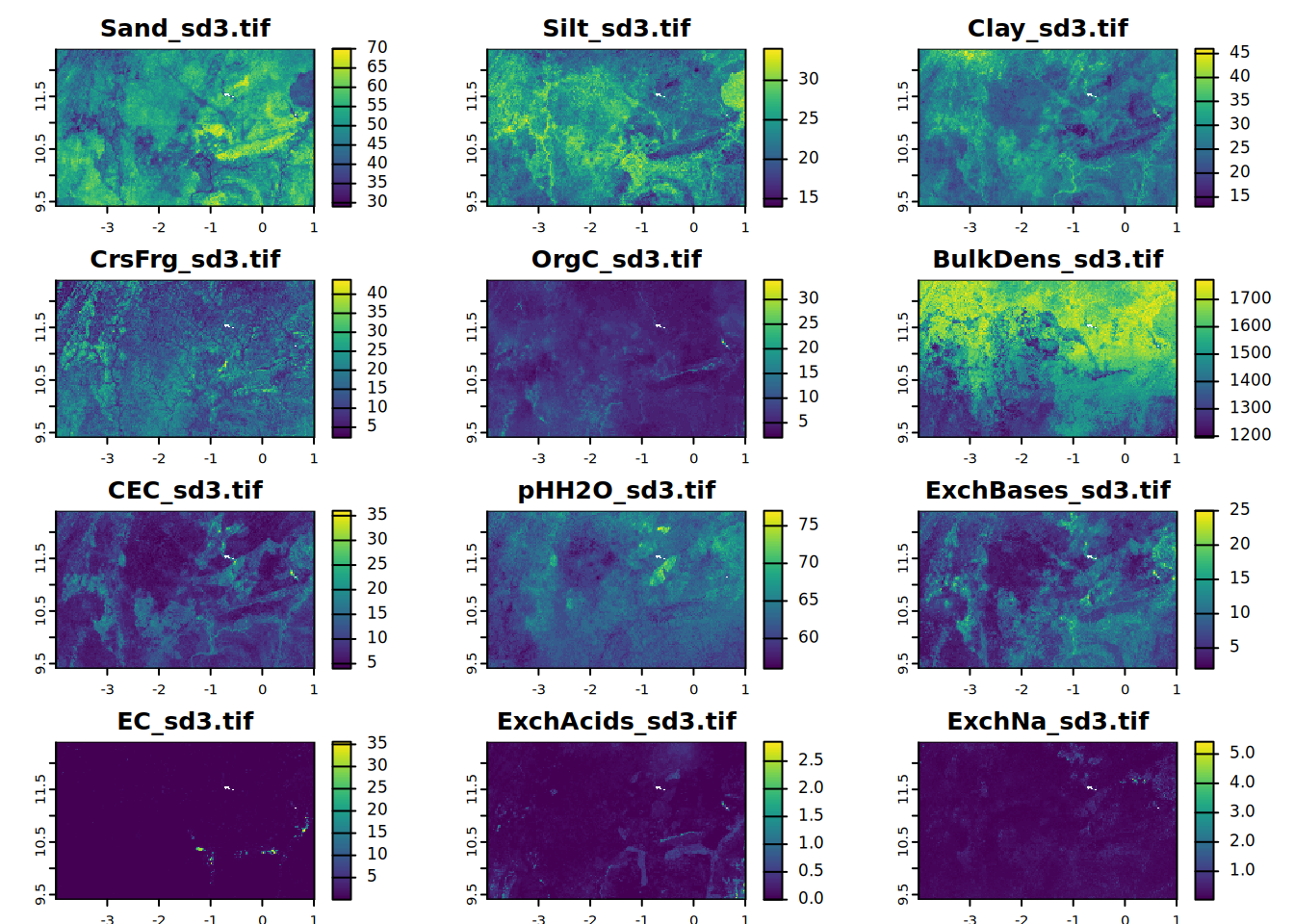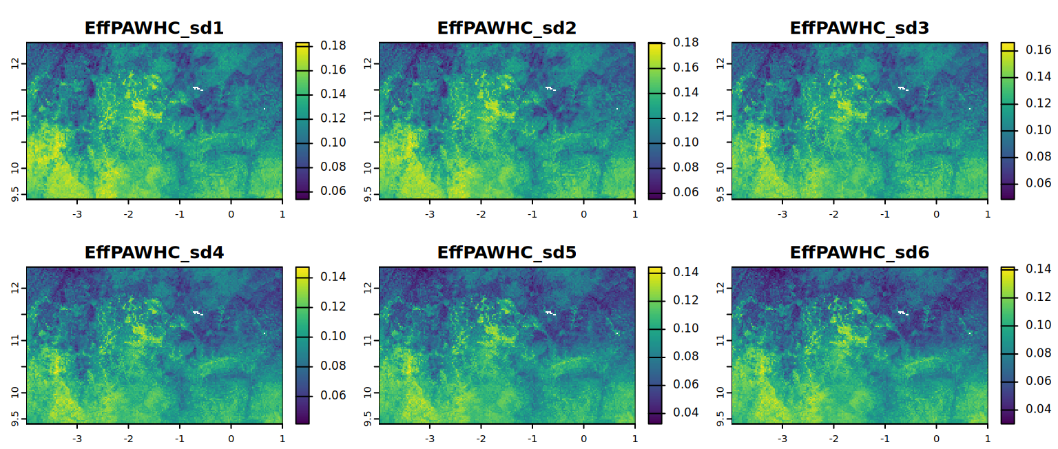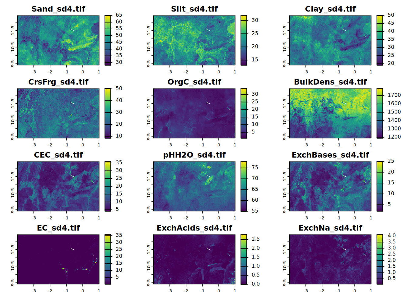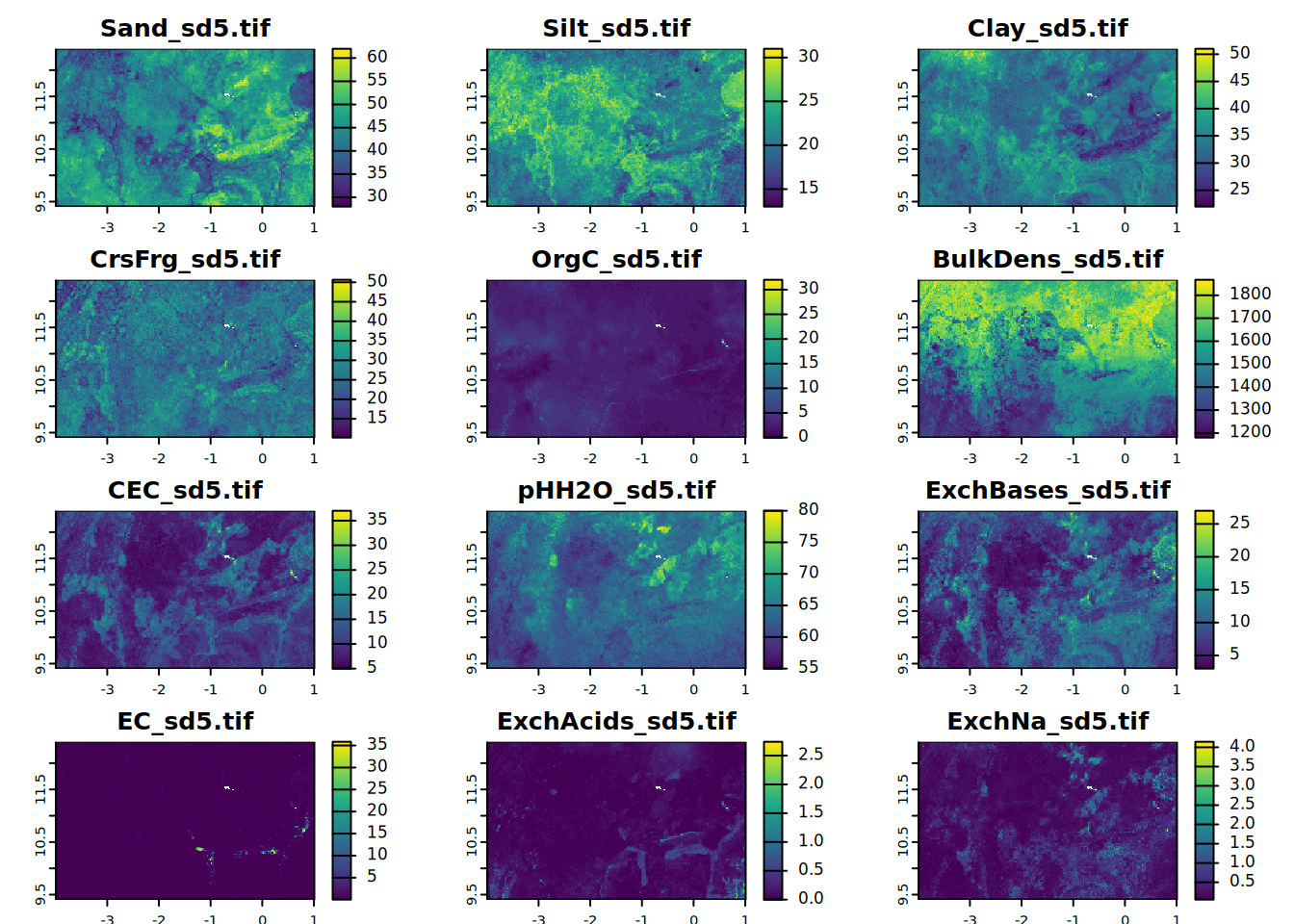 Africa soilgrids data available per depth interval and required as input data to the external functions (6 values for 6 depth intervals per pixel):