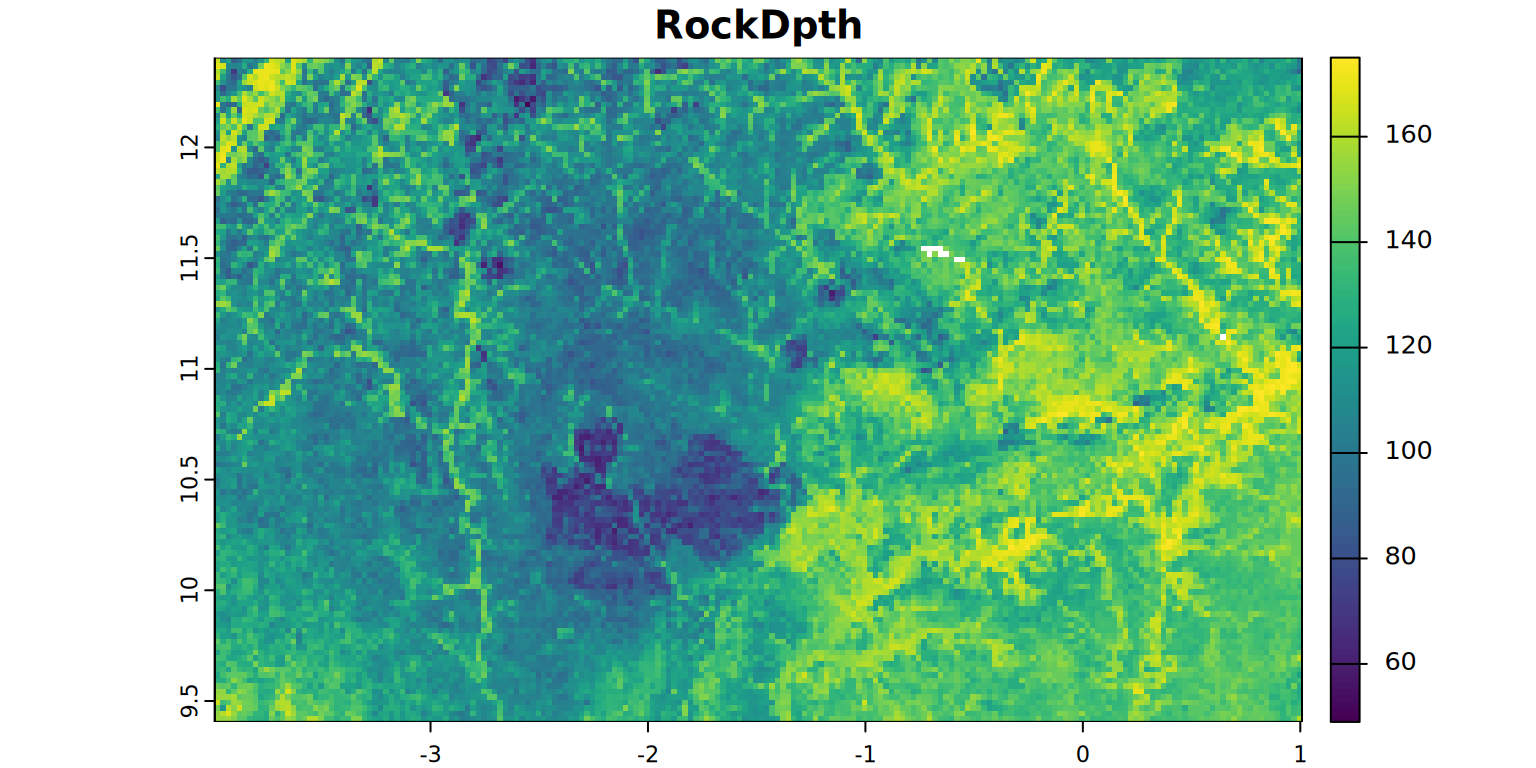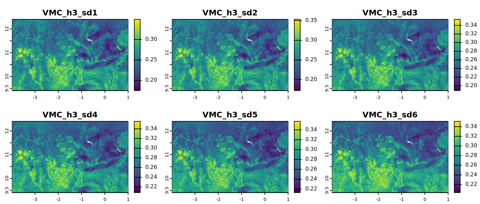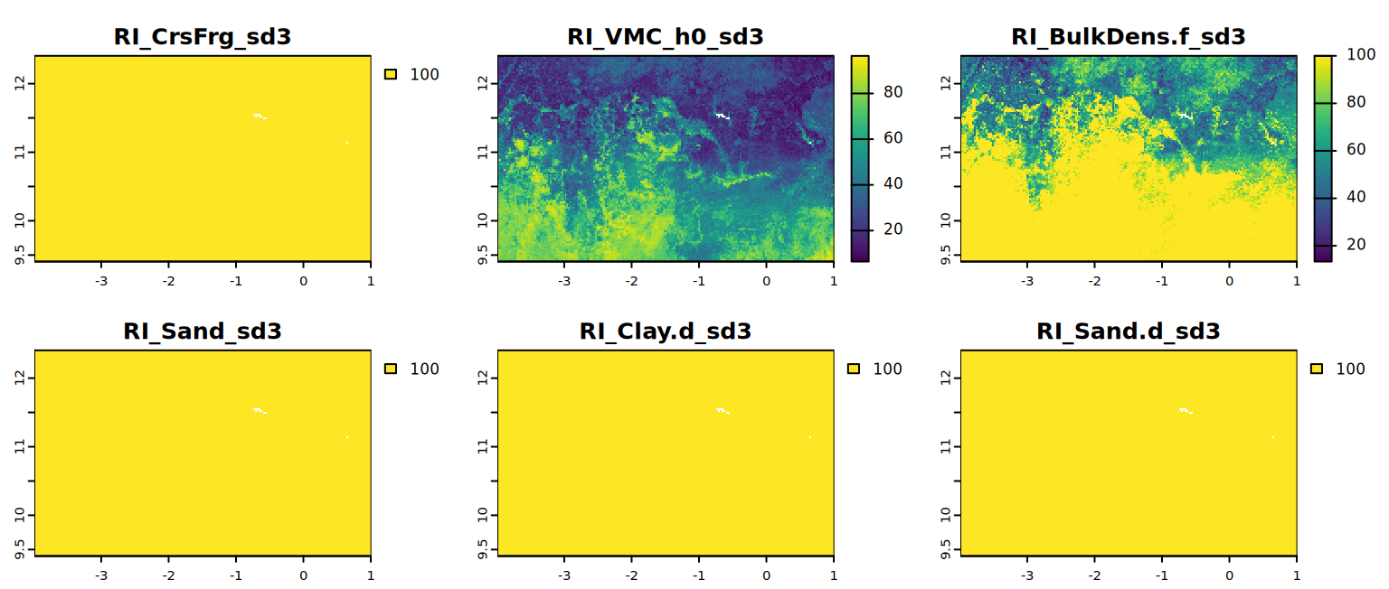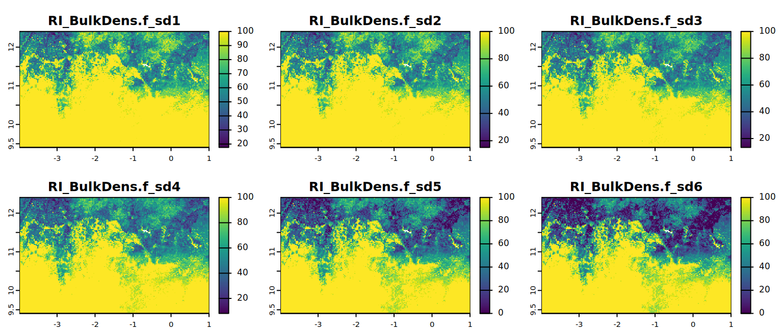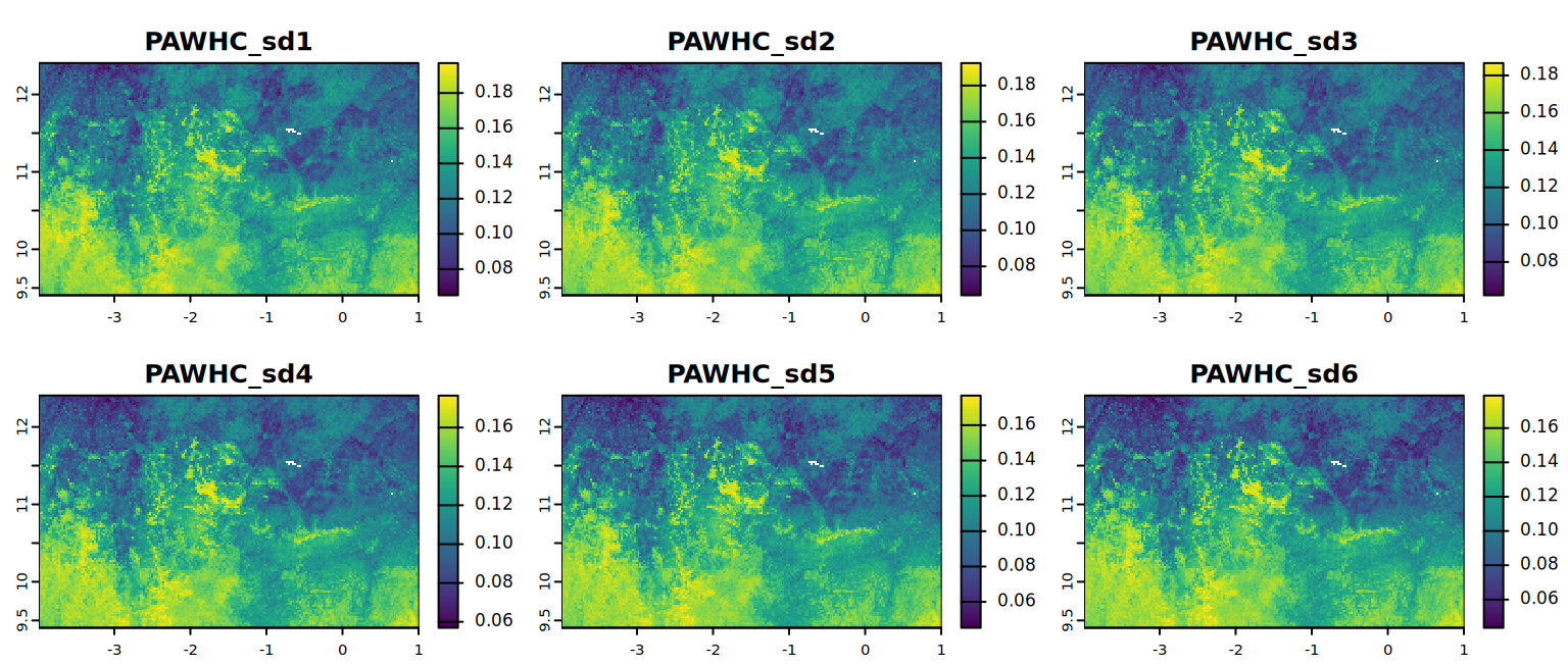 Africa soilgrids data available per depth interval and required as input data to the external functions (6 values for 6 depth intervals per pixel):