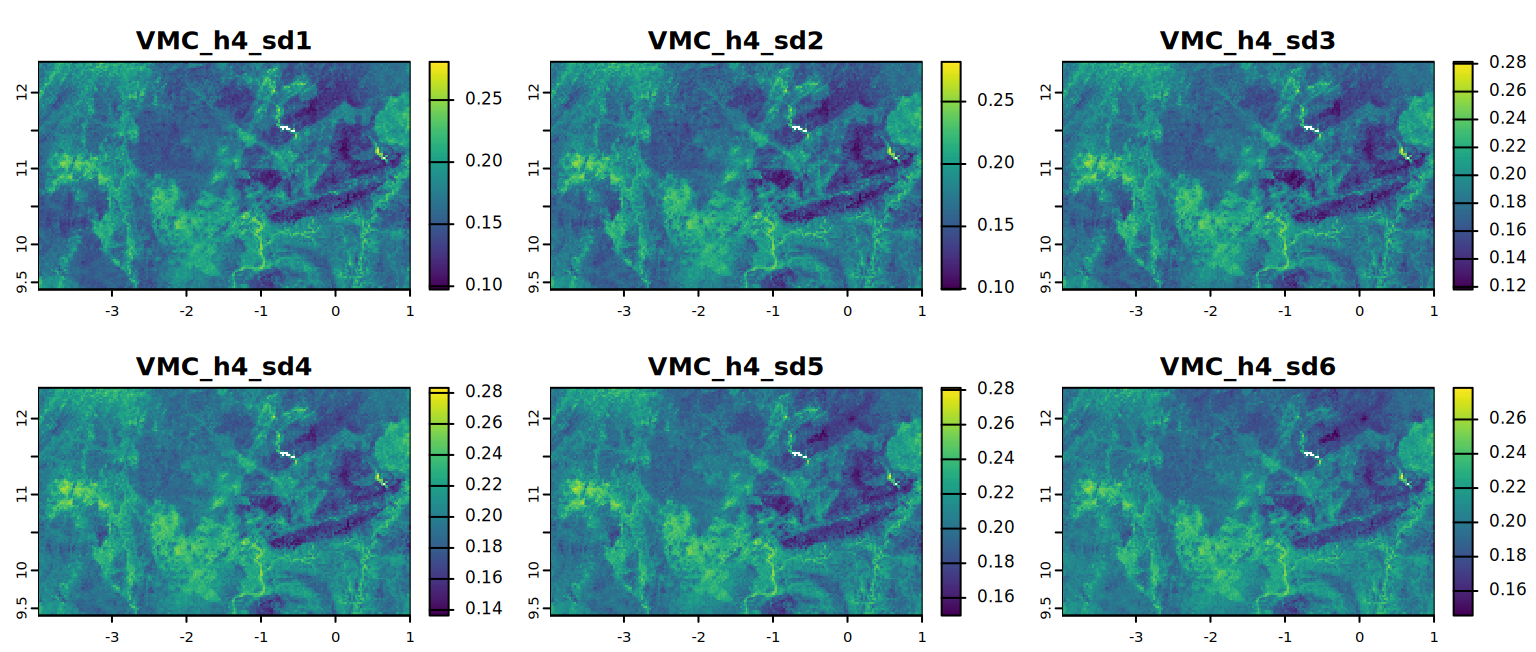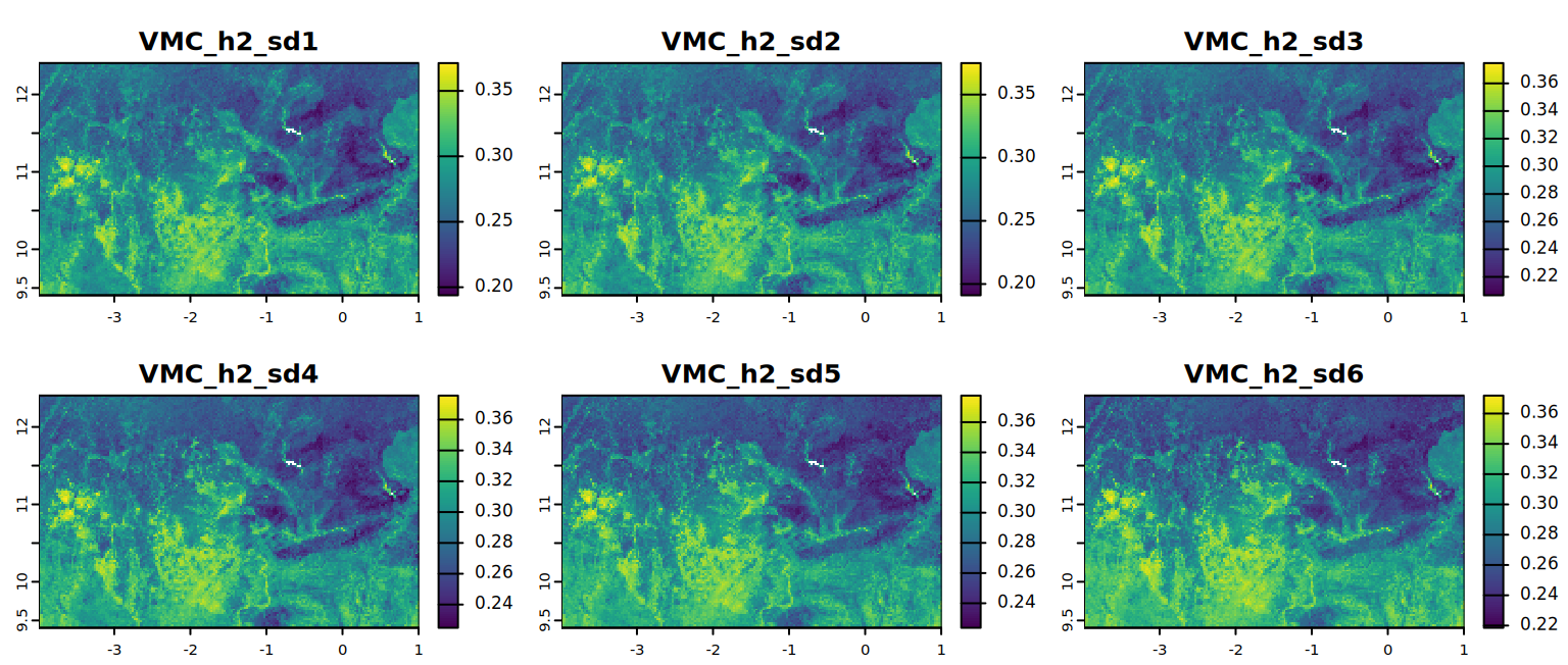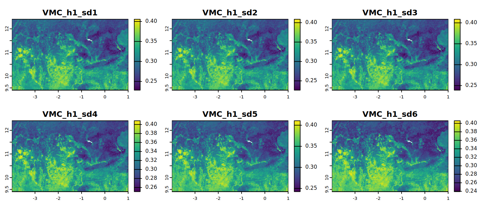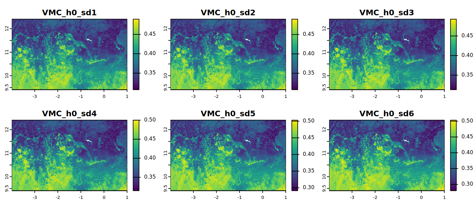 Africa soilgrids data available per depth interval and required as input data to the external functions (6 values for 6 depth intervals per pixel):